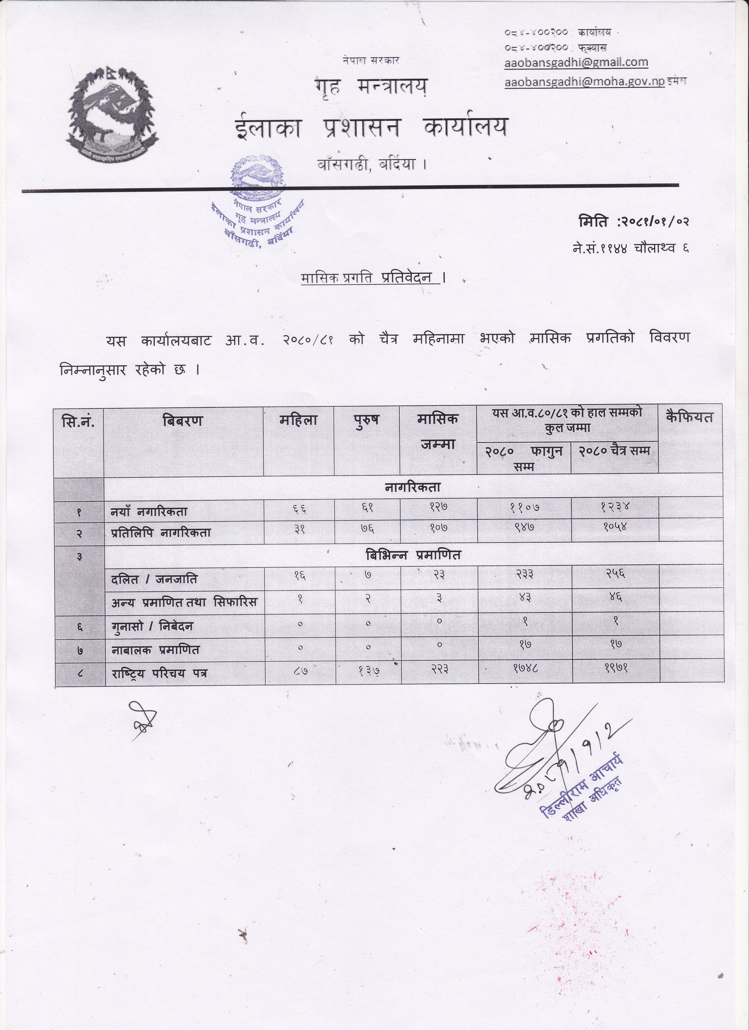 २०८१ वैषाख महिनाको मासिक प्रगति विवरण