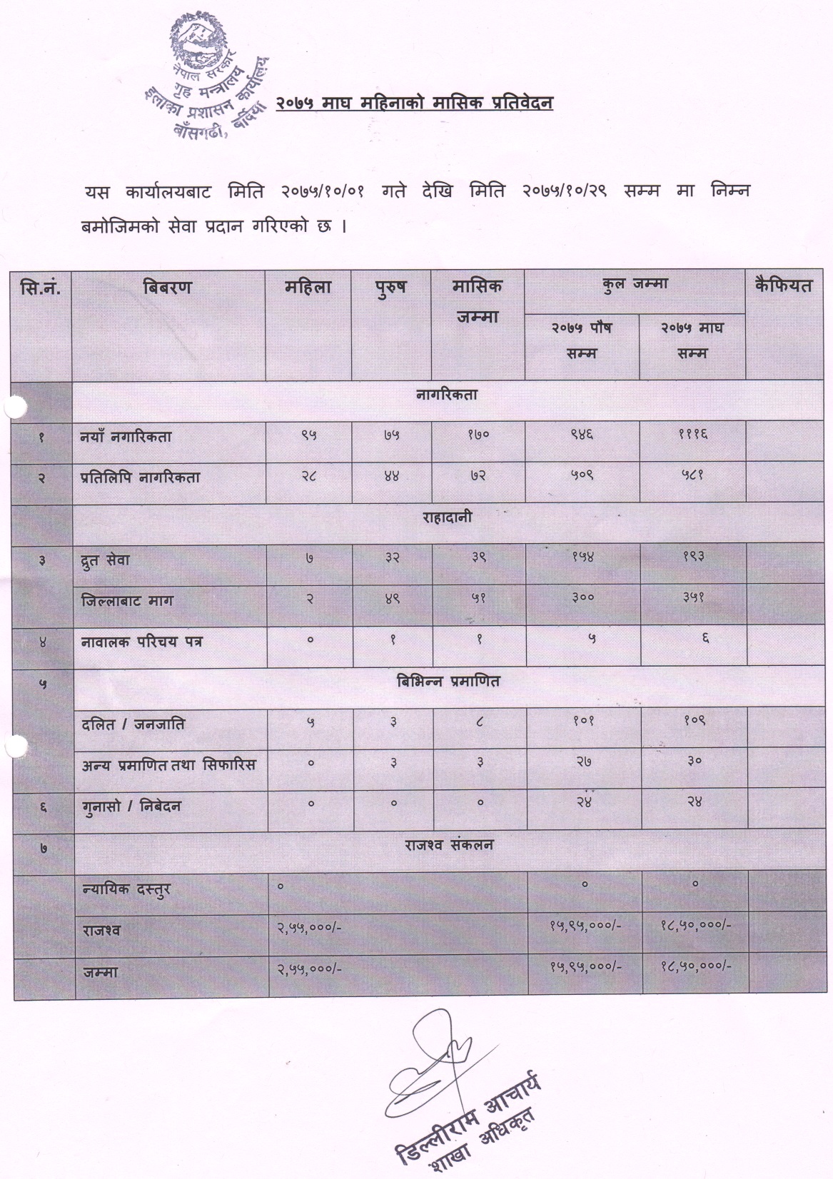 माघ महिनाकाे प्रगति विवरण