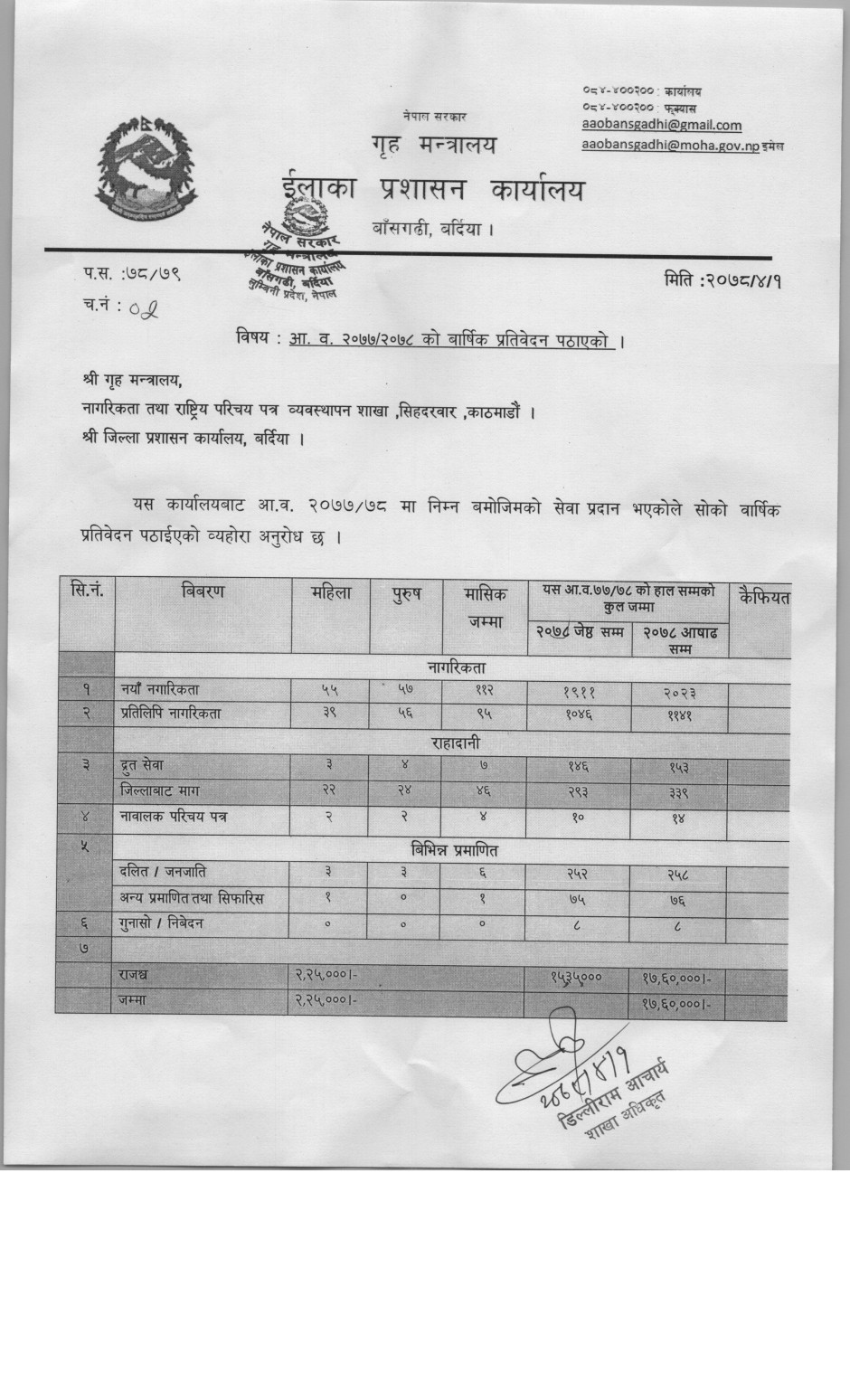 आ व ०७७/७८ को बार्षिक प्रगति प्रतिवेदन