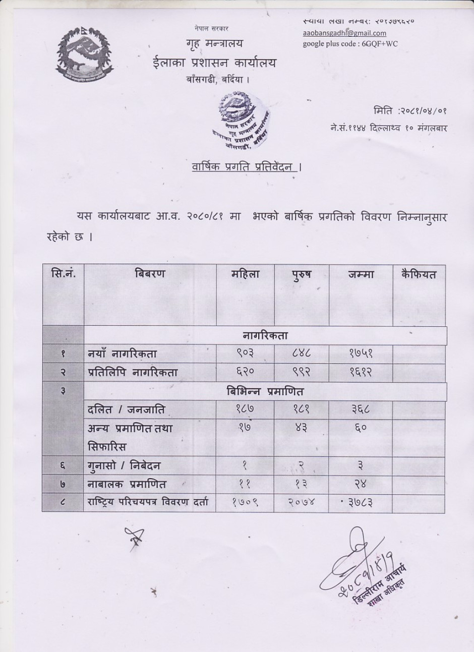 आ.व. २०८०/८१ को वार्षिक प्रगति विवरण