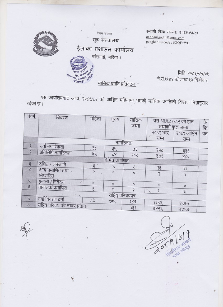 २०८१ आश्विन महिनाको प्रगति विवरण