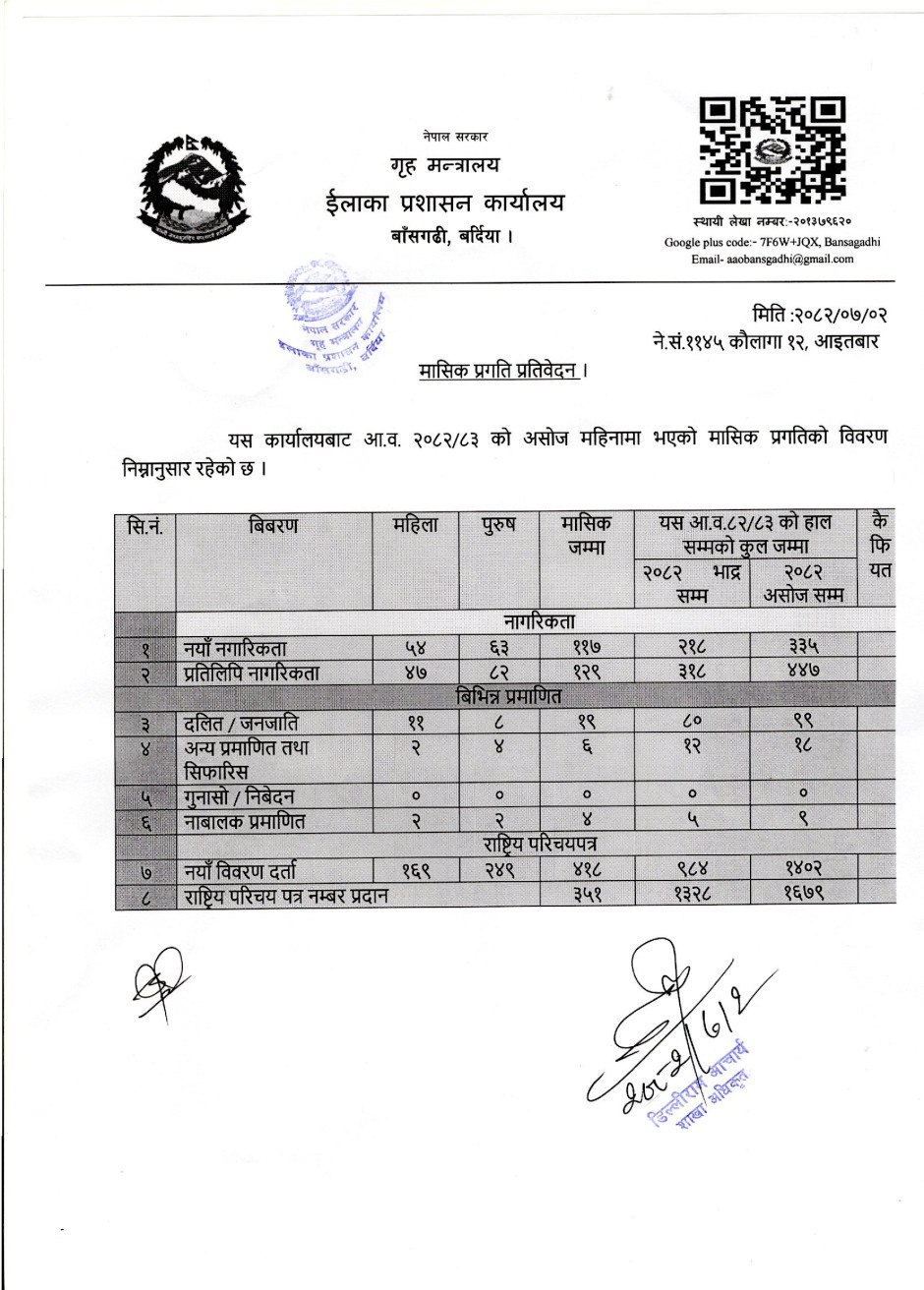 २०८२ चैत्र महिनाको मासिक प्रगति विवरण