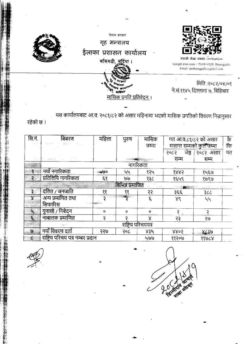 २०८२ चैत्र महिनाको मासिक प्रगति विवरण