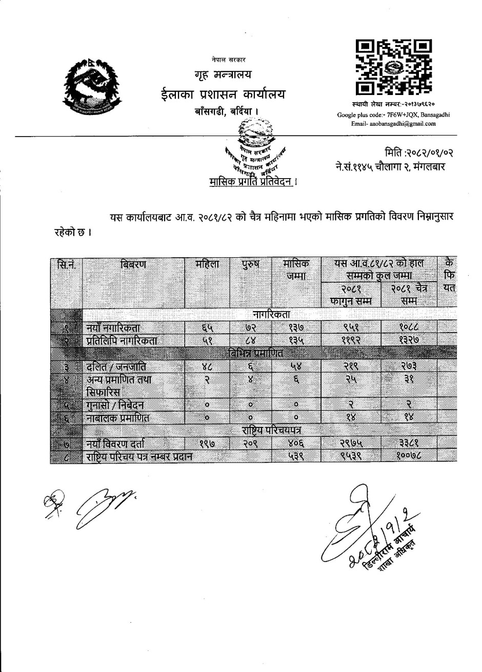 २०८२ चैत्र महिनाको मासिक प्रगति विवरण