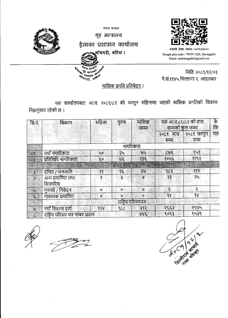 २०८२ फागुन महिनाको प्रगति विवरण