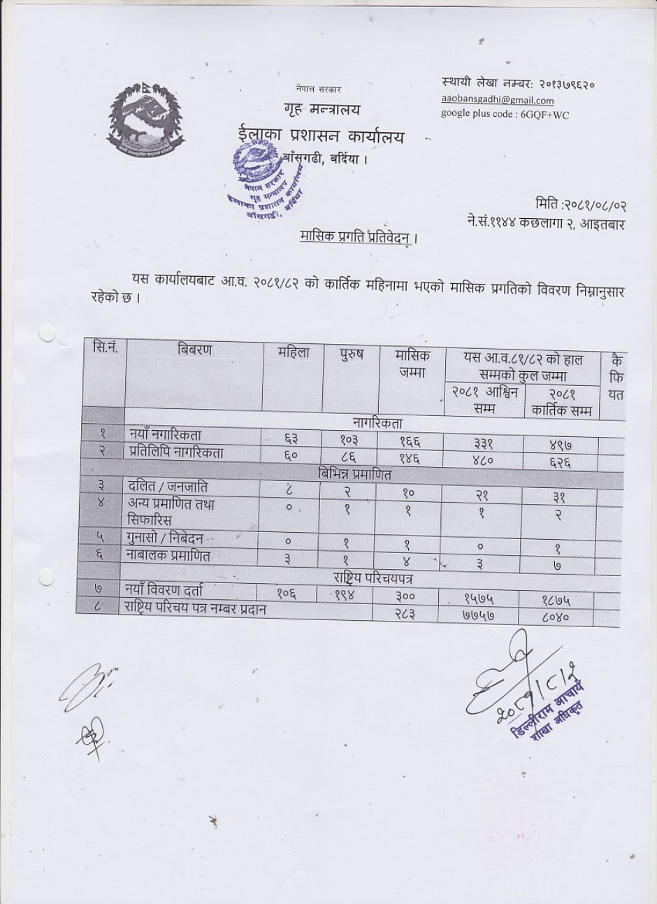 २०८१ कार्तिक महिनाको प्रगति विवरण